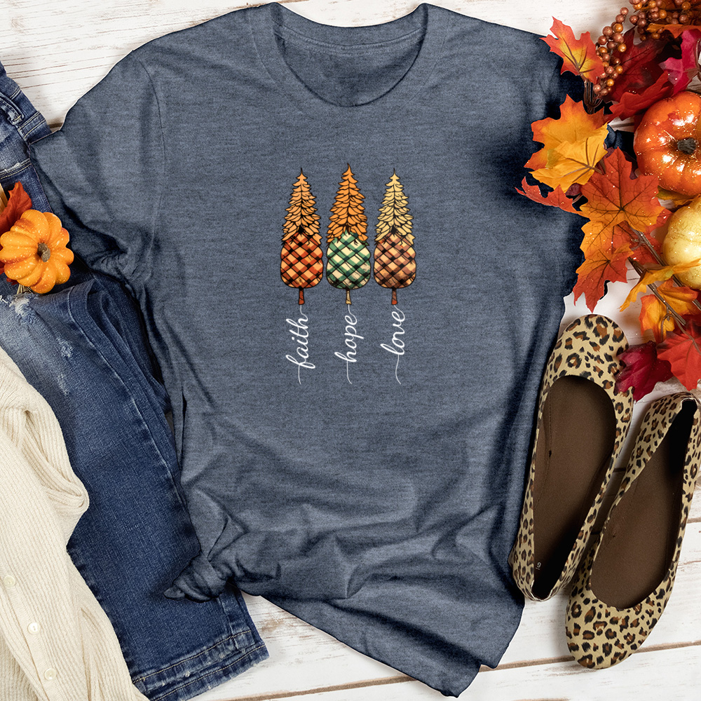 Faith Hope Love Plaid Trio Pine Trees Heathered Tee