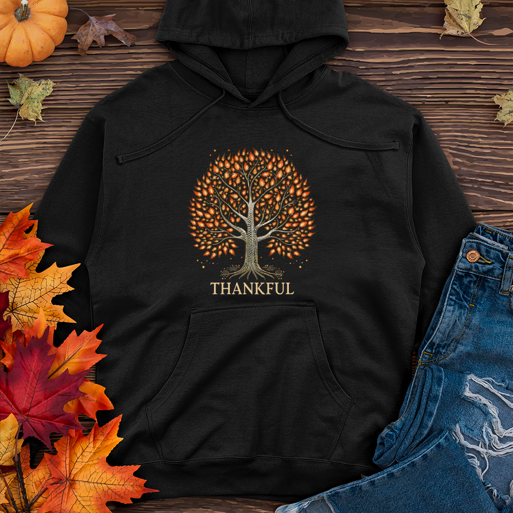 Glimmering Bonfire Fall Themes Tree Midweight Hooded Sweatshirt