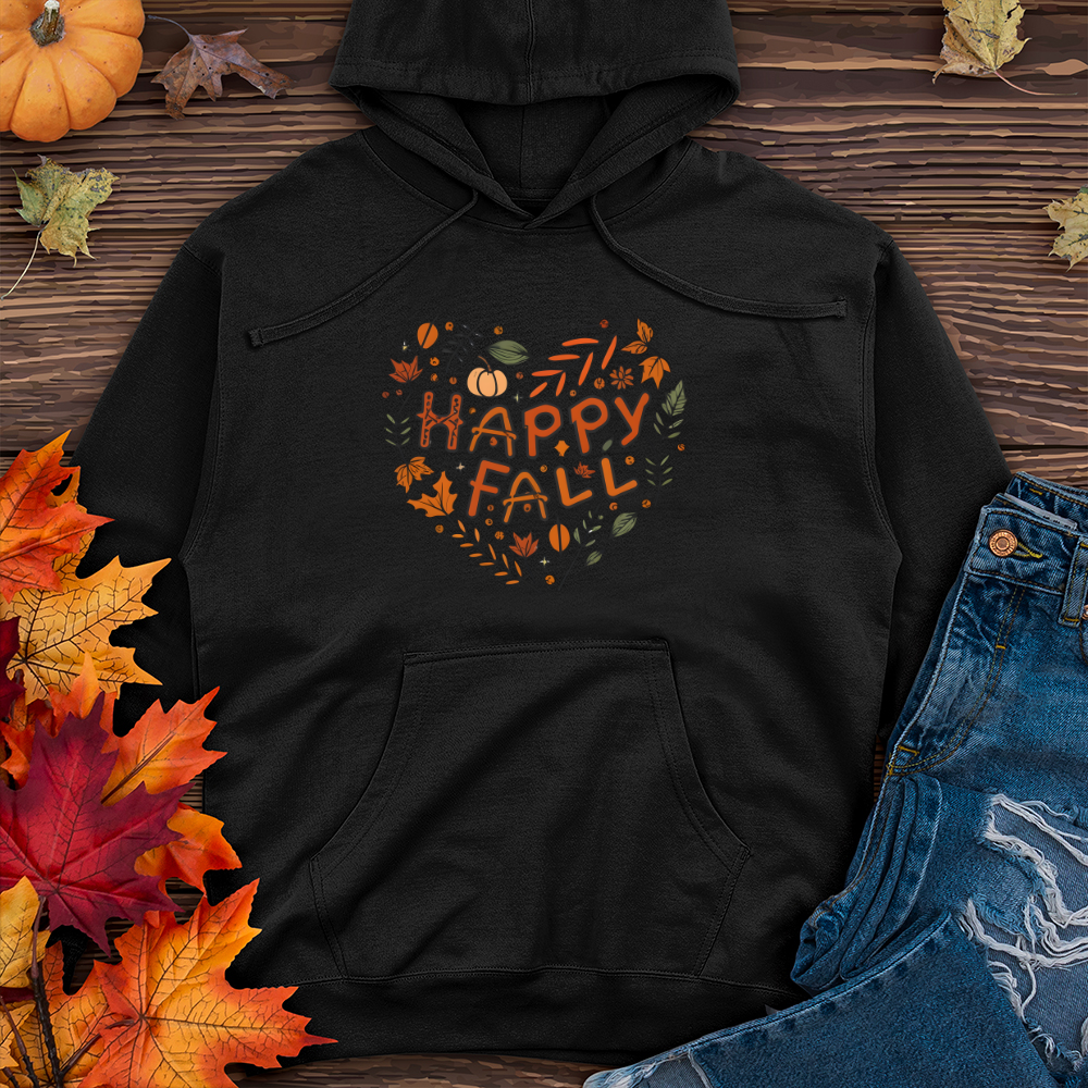 Happy Fall Heart Heathered Tee Midweight Hooded Sweatshirt