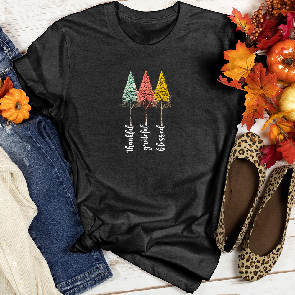 Retro Gratitude Trio Pine Trees Heathered Tee